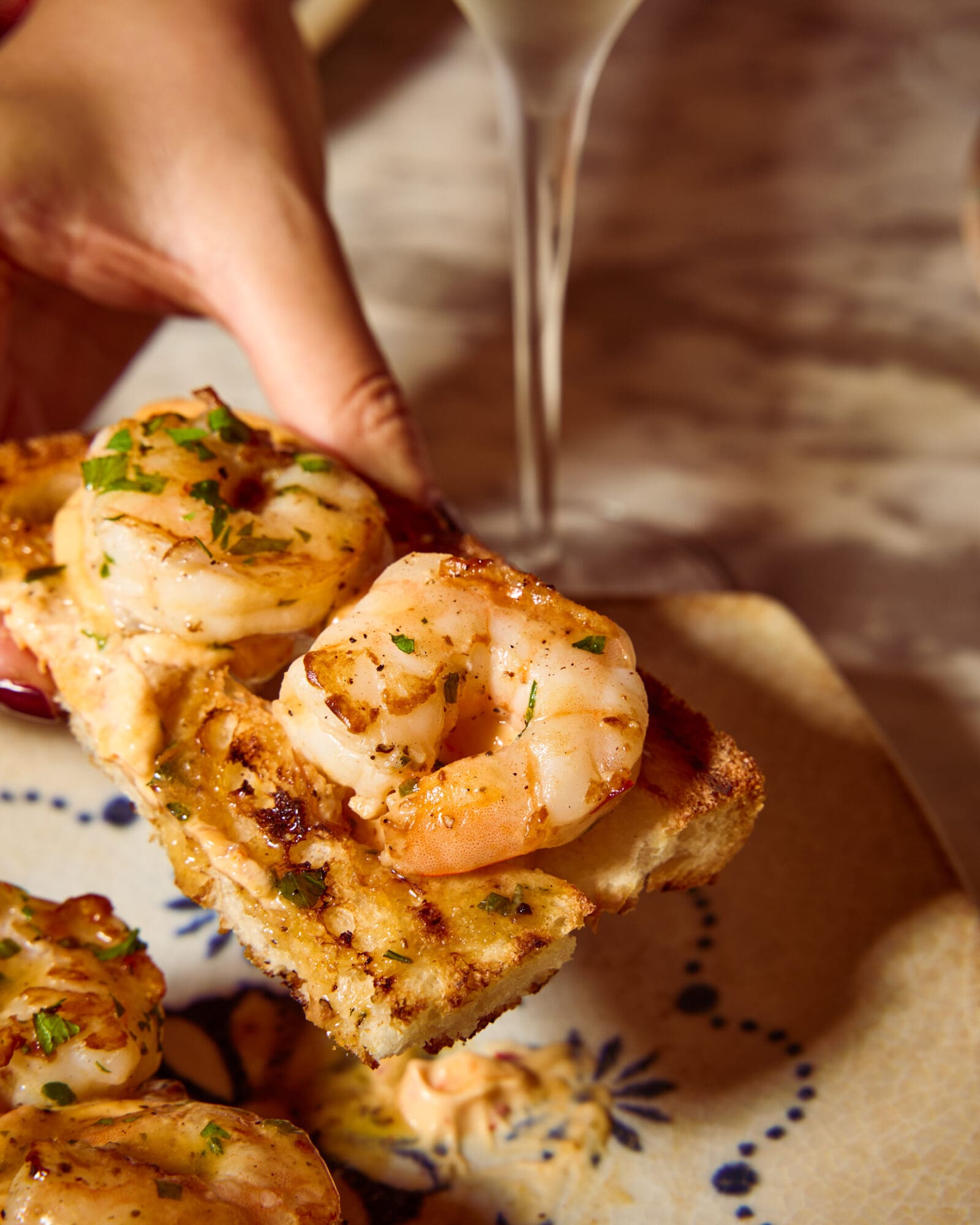 Toasted sourdough, pan-fried king prawns & chilli mayonnaise